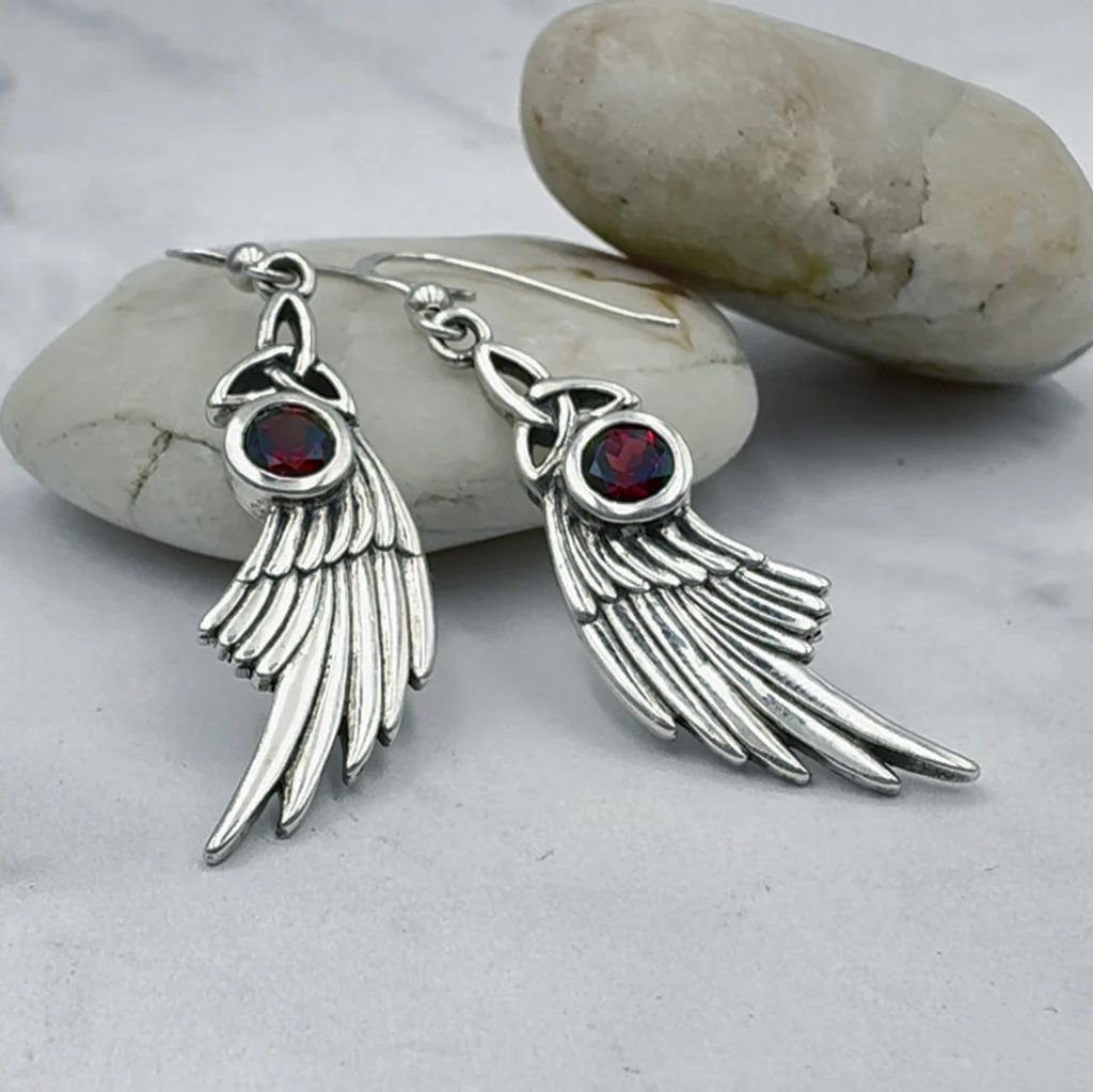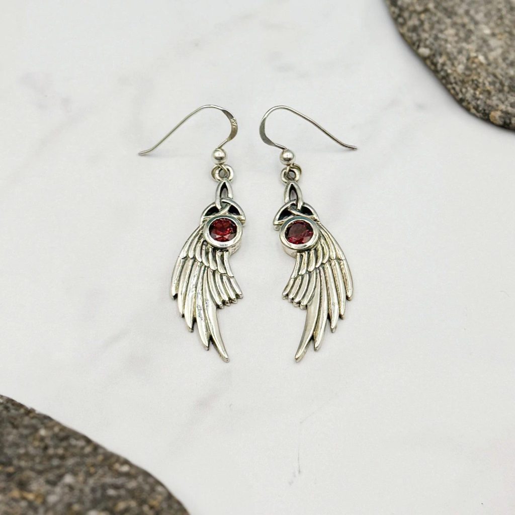 Každý z nás je něžně obklopen křídly anděla, který vidí skrze neviditelná zázraky a zvláštní události. Tyto náušnice, zdobené jemnými keltskými uzly a drahocenným granátem, jsou symbolem ochrany a mystické síly. Vyrobeny z kvalitního stříbra Ag 925/1000, v sobě nesou eleganci i symboliku.