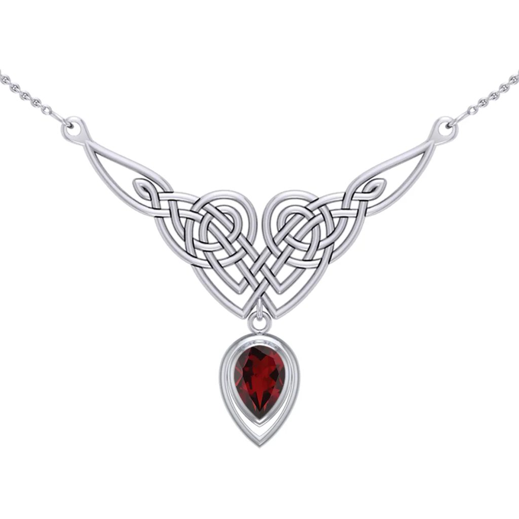 Granátové srdce Keltů – stříbrný náhrdelník