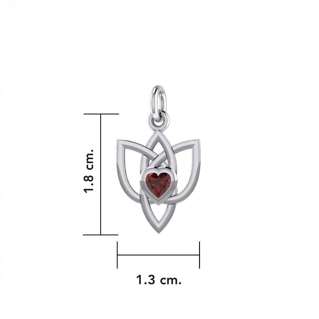 Stříbrný přívěsek s keltským uzlem a granátem ve tvaru srdce je decentní šperk s jasnou symbolikou, vhodný jako osobní talisman i smysluplný dárek.