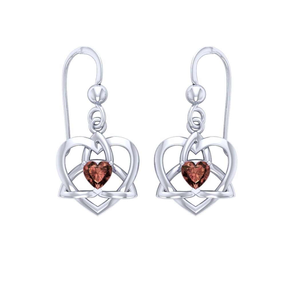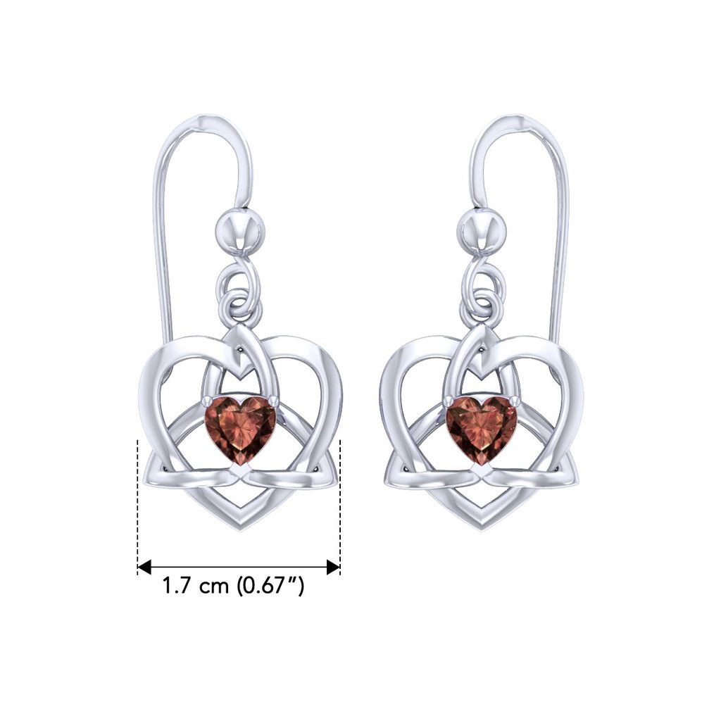 Stříbrné náušnice s motivem keltského uzlu a srdce doplněné granátem zaujmou jemným designem a výraznou barvou kamene. Díky nízké hmotnosti jsou vhodné pro pohodlné každodenní nošení.
