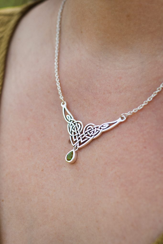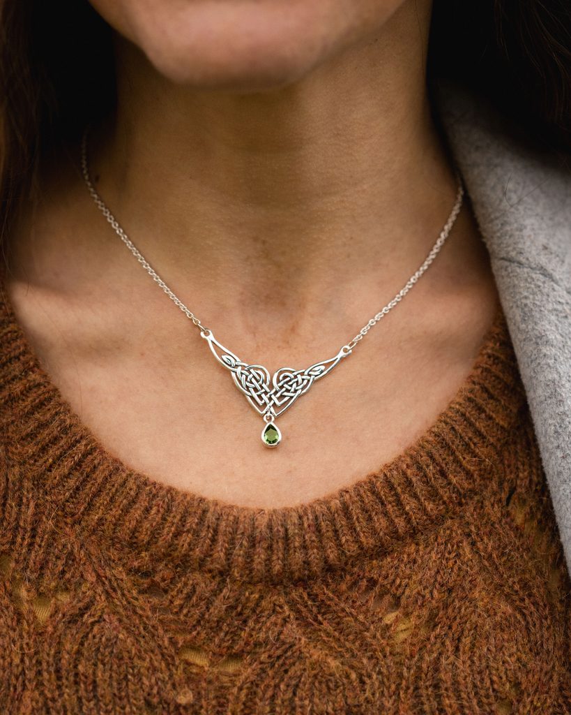 Lady Avalon – luxusní keltský stříbrný náhrdelník s českým vltavínem Spojení magického kamene z nitra české země a nadčasové keltské symboliky