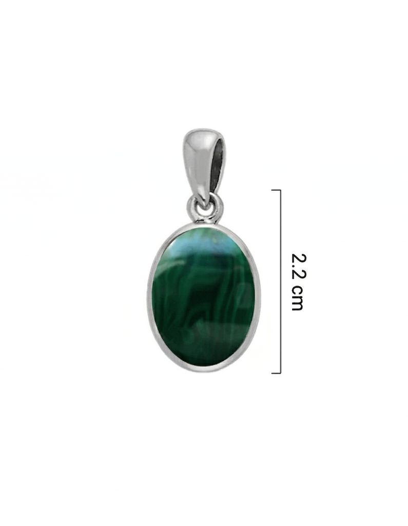 Stříbrný přívěsek s oválným malachitem zaujme svým výrazným zeleným zbarvením a přirozenou kresbou kamene. Jednoduchý design nechává vyniknout samotný kámen a jeho jedinečný vzhled.