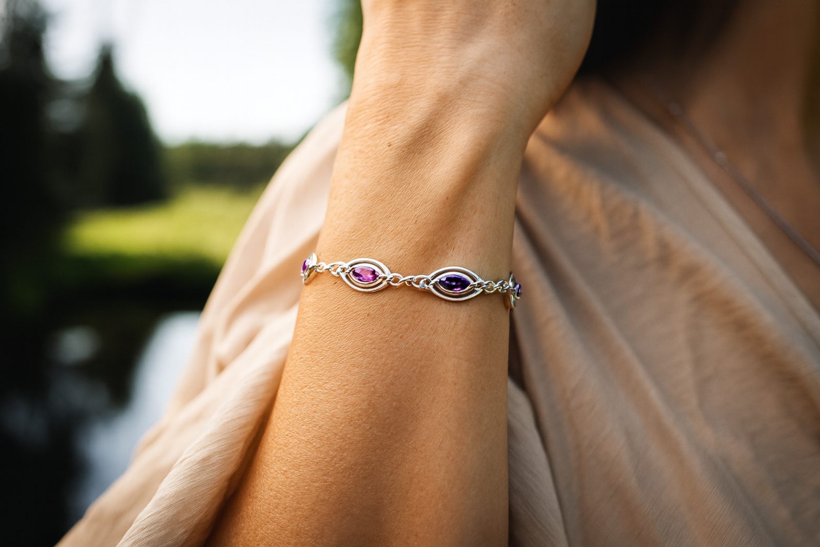 Symbol královské elegance: Luxusní stříbrný náramek s broušenými ametysty