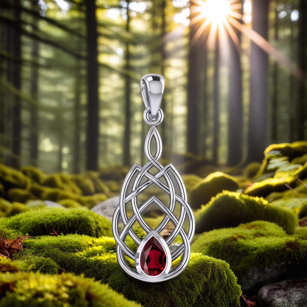 Plamen duše – stříbrný přívěsek s granátem a keltskými uzly