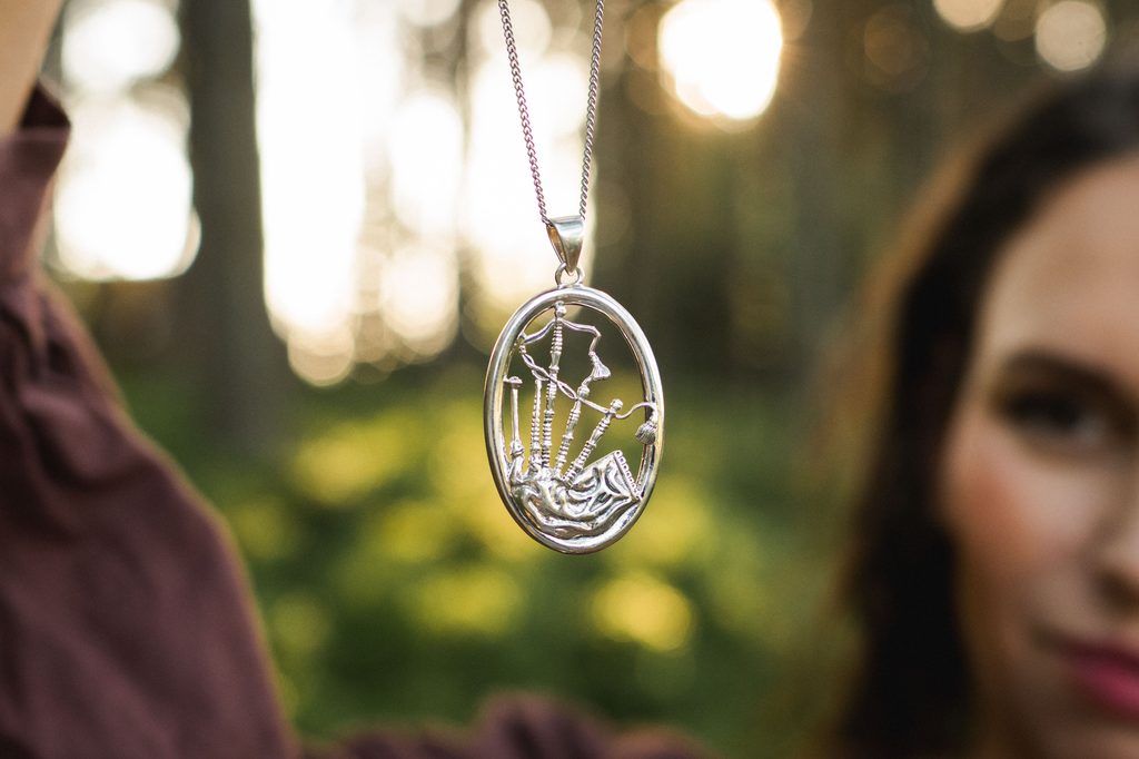 Symbol skotské tradice: Stříbrný přívěsek Skotské dudy