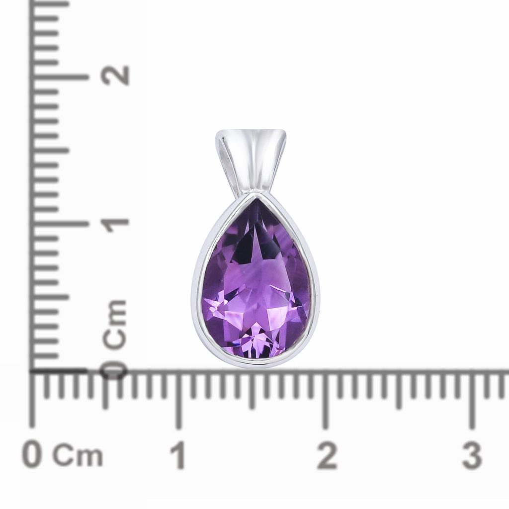 Tento jemný přívěsek ze stříbra 925 nese ušlechtilý fialový ametyst vybroušený do tvaru slzy (Pear cut) o velikosti 7 × 10 mm. Čistý design nechává vyniknout přirozenou krásu kamene, který působí klidným, tajemným dojmem a přitahuje pohledy svou sytě fialovou barvou.