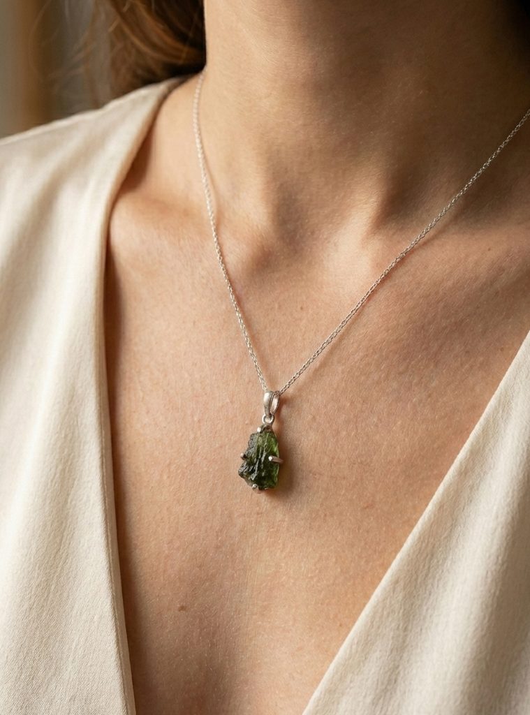 Stříbrný přívěsek s vltavínem je nadčasový šperk s přírodním původem a hlubší symbolikou. Díky jednoduchému provedení a kvalitním materiálům je vhodný pro každodenní nošení i jako smysluplný dárek.