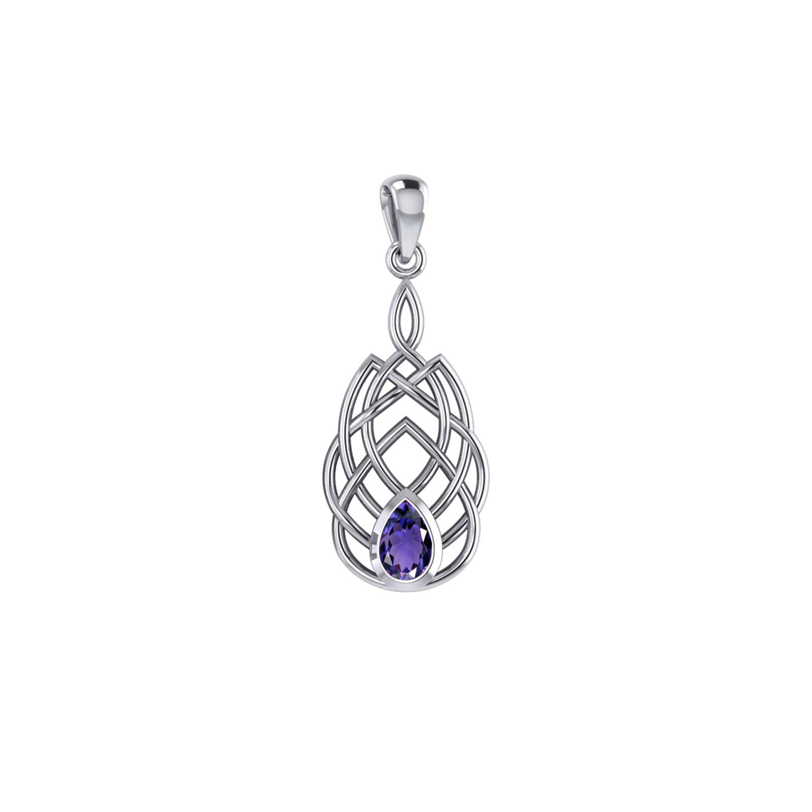 Kouzlo nekonečného propojení. Elegantní stříbrný přívěsek v sobě nese jemný keltský motiv věčného uzlu, který objímá kapku fialového světla – přírodní ametyst ve výbrusu pear cut.