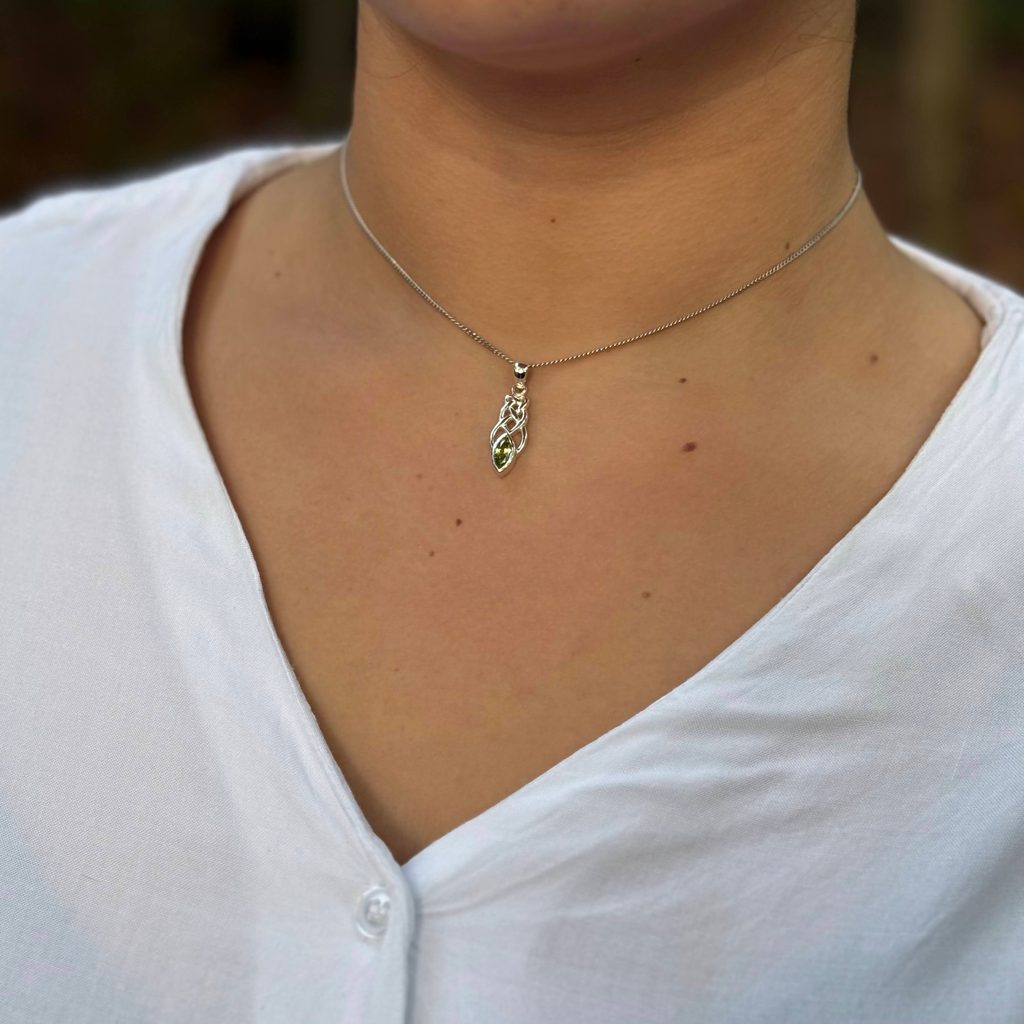 Přívěsek Zelený pramen je elegantním symbolem životní síly a propojení s přírodou. Jemný keltský uzel připomíná nekonečný tok energie, zatímco zářivý broušený olivín v jeho středu přináší svěžest, radost a očistu. Tento přívěsek je ideálním talismanem pro ženy, které chtějí znovu rozproudit svou vnitřní energii – jemně, ale s jistotou.